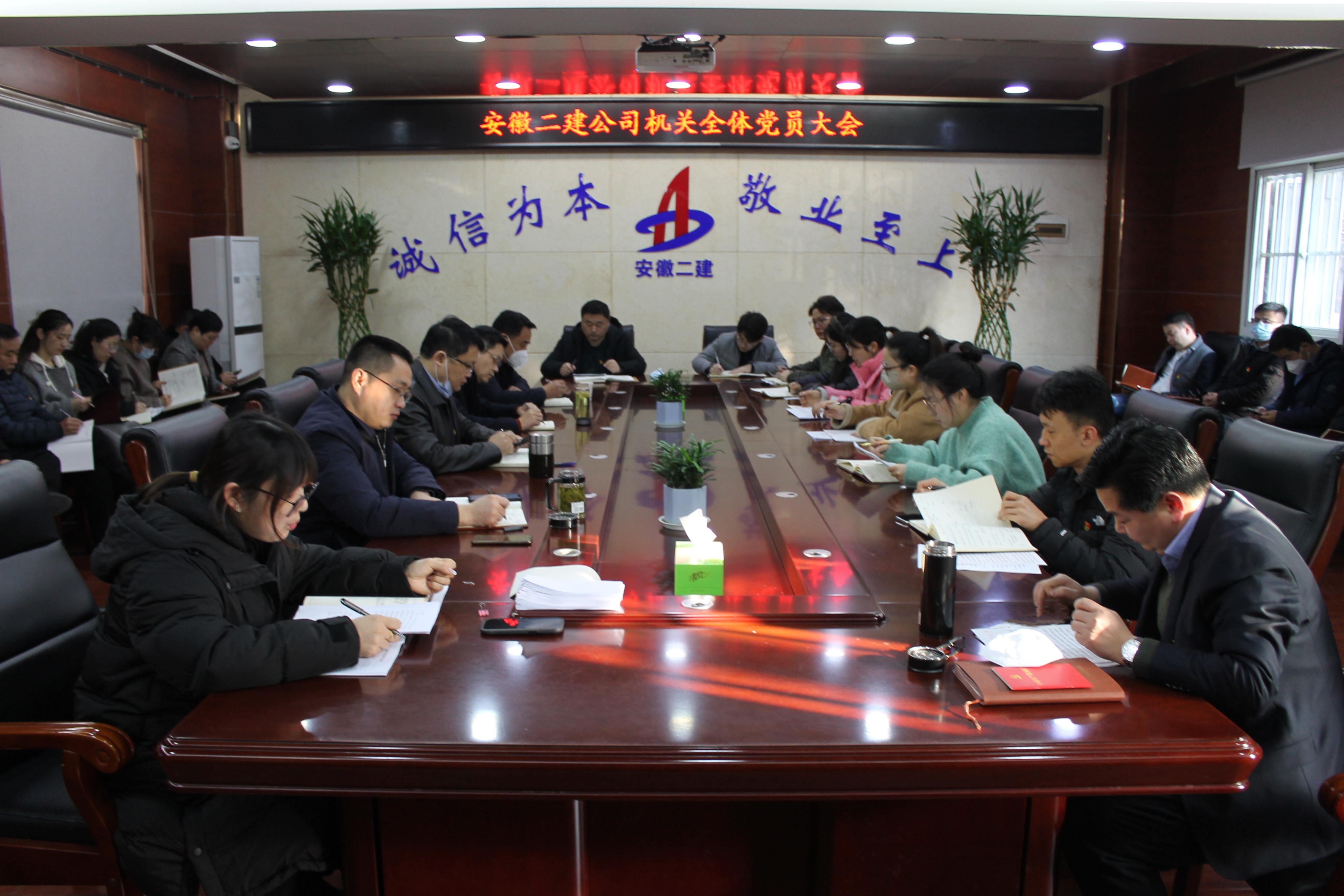 1月31日上午,安徽二建公司機關黨支部在公司一樓會議室召開黨員大會。公司黨委副書記、總經理李建成出席會議并講話。會議由機關黨支部書記龍姍姍主持,43名黨員參會。