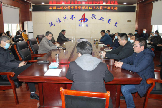 為進一步加強干部隊伍建設,推動企業更好更快發展。2月4日,安徽二建公司召開中層管理及以上人員干部大會。公司領導、機關部門負責人、分公司黨政主要領導、部分職工代表參加,會議由公司黨委工作部主任施用宏主持。
