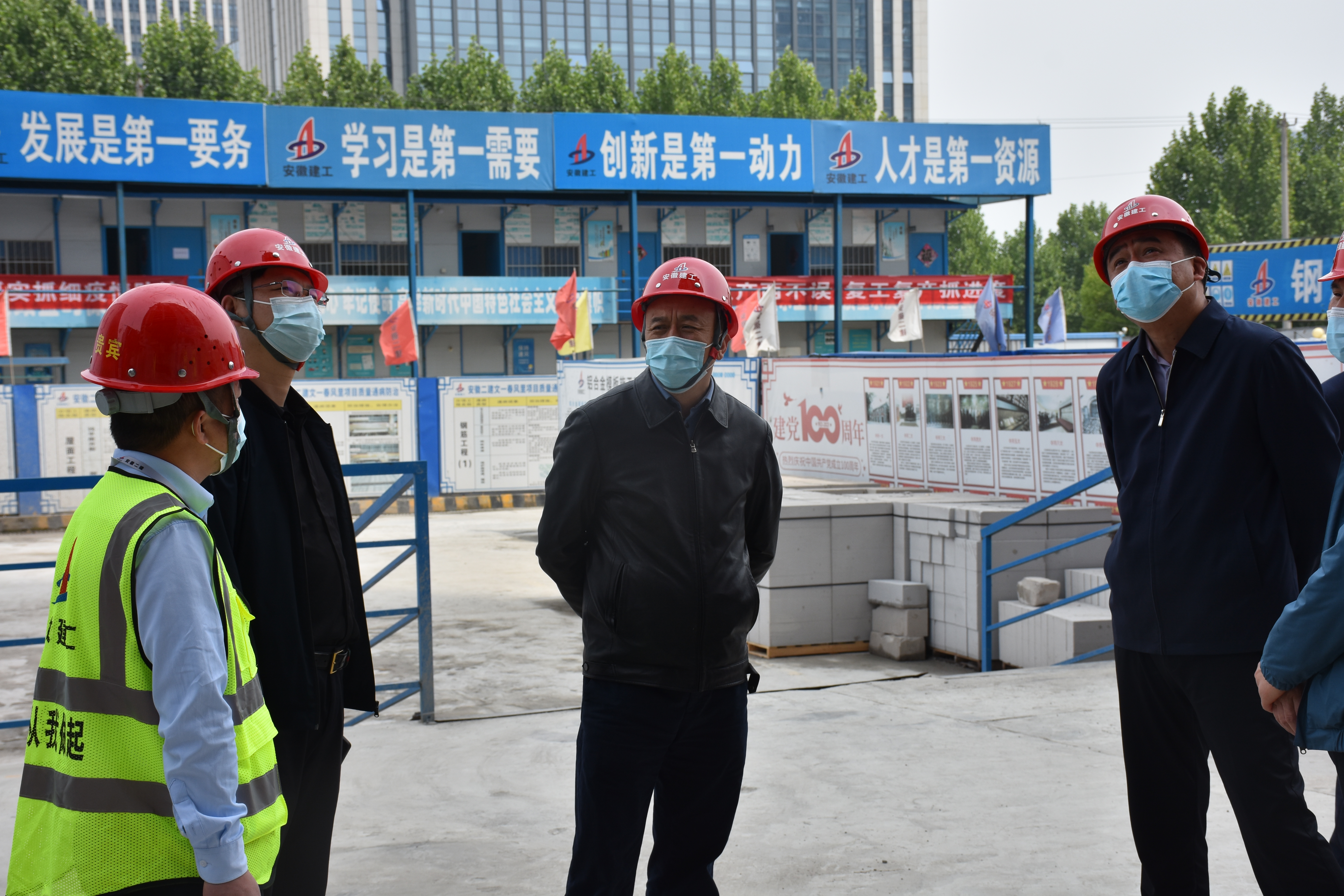 王汪苗現(xiàn)場督導(dǎo)檢查項目部的施工現(xiàn)場、辦公區(qū)域、食堂、生活區(qū)情況,詳細了解項目部疫情防控工作部署、落實集團及屬地工作要求、常態(tài)化疫情防控措施及防疫物資儲備等有關(guān)重點工作。在聽取項目部關(guān)于當前生產(chǎn)及疫情防控工作的匯報后,王汪苗對項目工作給予肯定,并指出,文一春風(fēng)里項目作為二建首個超高層工程,在抓好履約工期及安全生產(chǎn)的同時必須嚴把防疫關(guān),確保廣大職工生命健康安全。